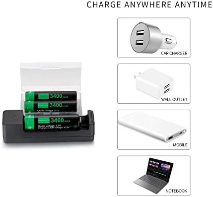 【What you get】 1 x Safe One-Bay Battery Charger, 4 x 18650 Rechargeable batteries (3400mAh), 1 x 2.1 USB charging cable, 2 x storage case and 1 x instruction sheet,All products will be checked one by one before being sent to Amazon warehouse, please rest assured to shop.