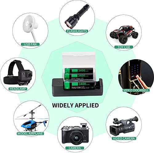【Durable rechargeable】3400mAh 18650 Rechargeable battery large capacity,Which can be widely used for electronic devices, such as LED flashlights, emergency lights, portable devices, headlights, toys, remote controls, etc.Recharge up to 1050 cycles – longer battery life than alkaline batteries, No need to buy batteries frequently.