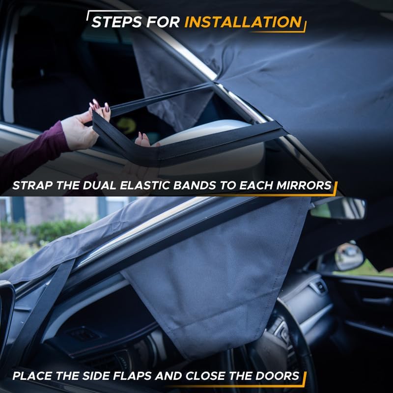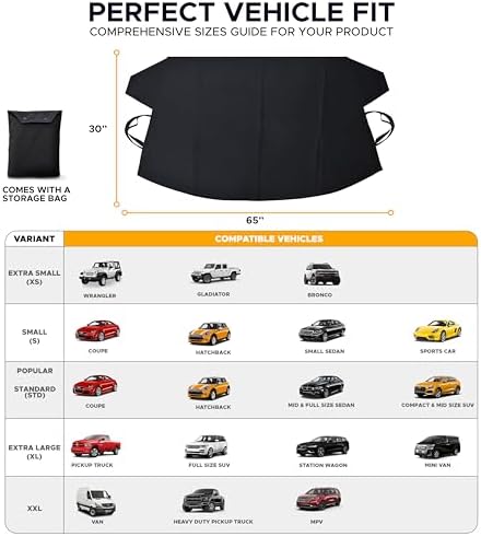 Offers End-To-End Coverage: With its 69-inch length and 42-inch height, our snow windshield cover will fill the front windshield from end to end on most large vehicles. It’s also available in two sizes to fit most SUVs, Vans, and Trucks.