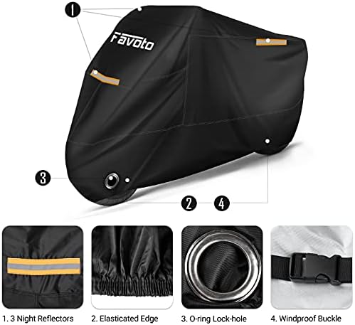 【Universal Fit & Waterproof Strips】- Favoto waterproof motorcycle cover is universal and fits various motorcycles with a measurement of 96.5x41x50 inch /245x105x125 cm. The seams are double-stitched with waterproof tape inside, effectively solving the problem of water leakage.
