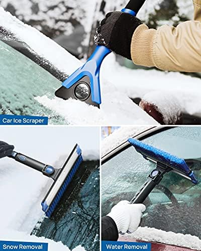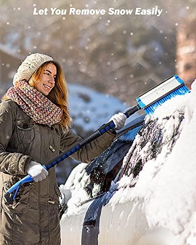 【Time Saving & Happy】The telescoping snow car brush scraper is designed for snow removal, triangular aluminum rod and scientific labor-saving design. The handle of the car snow shovel is foam non-slip, easy to operate and control, saving time. Participating in snow sweeping with your family is a loving moment and you should have this happiness.