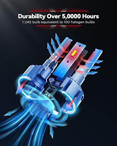 50000 Hours Lifespan: Aviation aluminum body design and waterproof technology,built-in powerful 13000RPM effecient cooling fan for optimal heat dissipation of LED light beads, 65% energy saving,reduces light decay, and extends service life up to 5.5 years to get rid of frequent bulbs replacements.