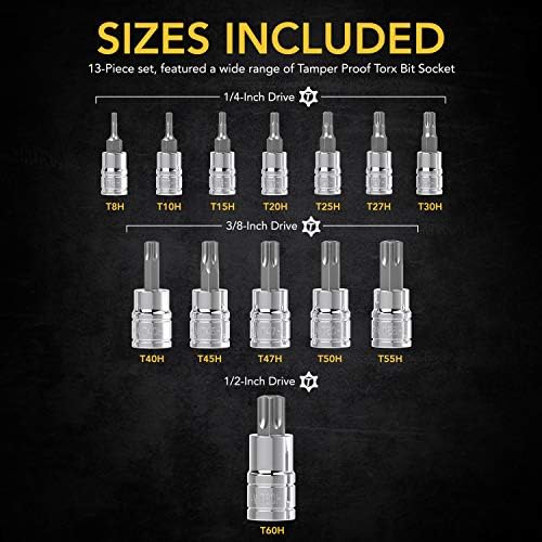 PREMIUM – 13-Piece set, Featured a wide range of Torx Tamper Proof Bit Socket. Crafted and Designed with superior materials for increased torque and unmatched hardness.