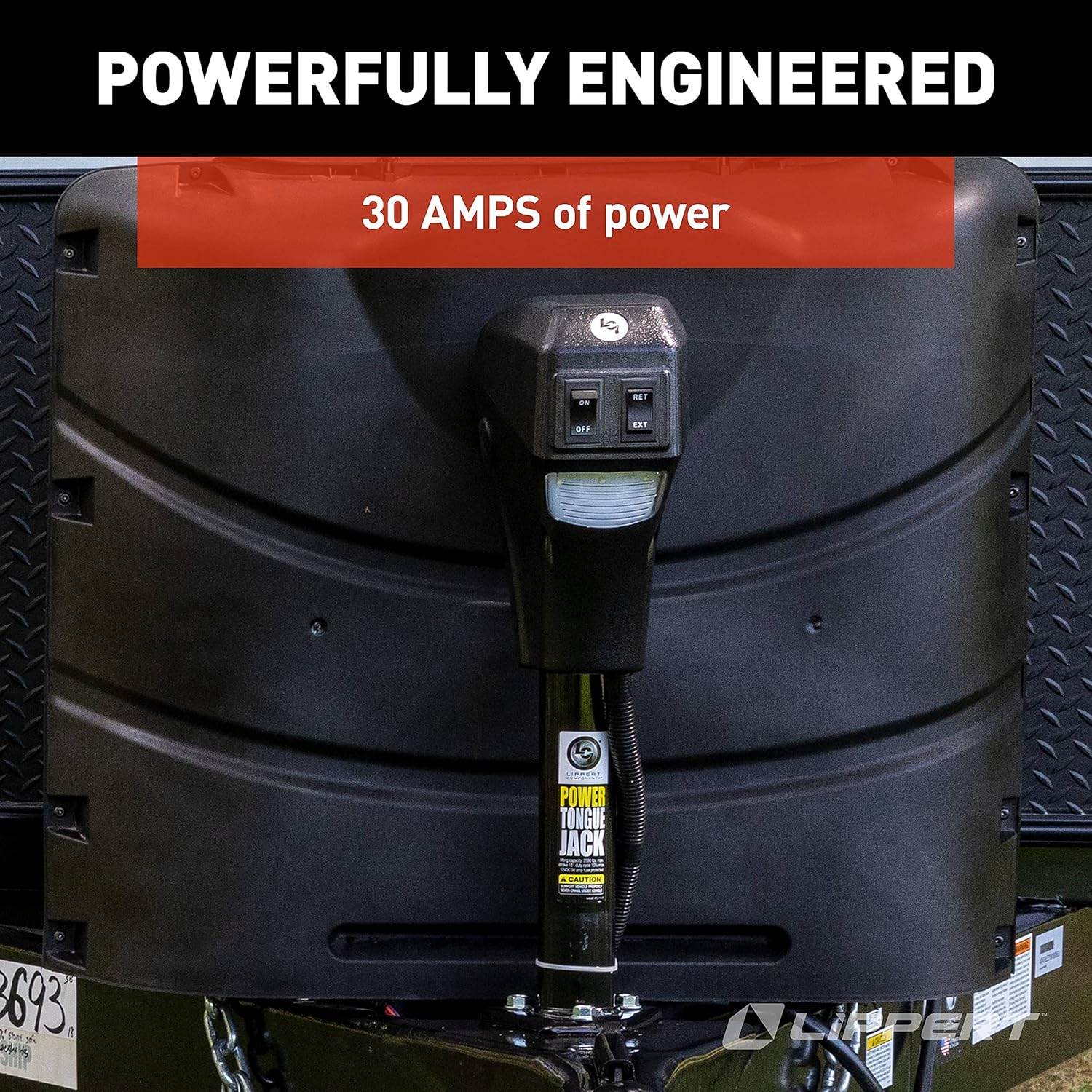 POWERFULLY ENGINEERED — Built to do heavy lifting, the Power Tongue Jack has a 3,500 lb. lift capacity, helical-cut gears, 30 AMPs of power, and a 12V motor — all designed to get the job done, quietly and efficiently, so you don’t have to