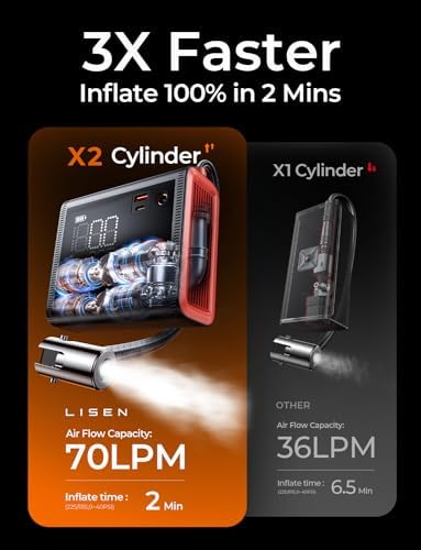 LISEN Tire Inflator Portable Air Compressor 2 in 1-4X Faster Inflator-25,000mAh