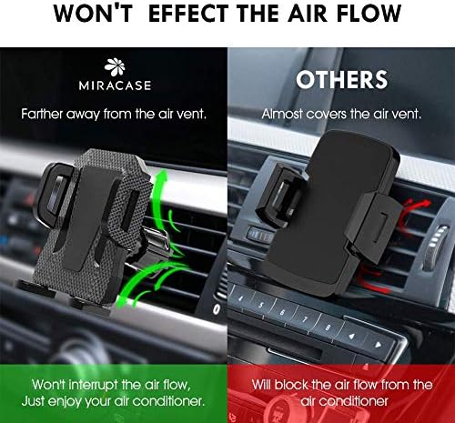 【Universal Compatibility】Miracase air vent phone holder cradle is compatible with all cell phones and devices between 2.1-4.05 inches wide, including thicker phone cases, navigation systems, and more. It works with iPhone, Samsung Galaxy and Note series, LG, Google Pixel, and all other cellphones and GPS devices