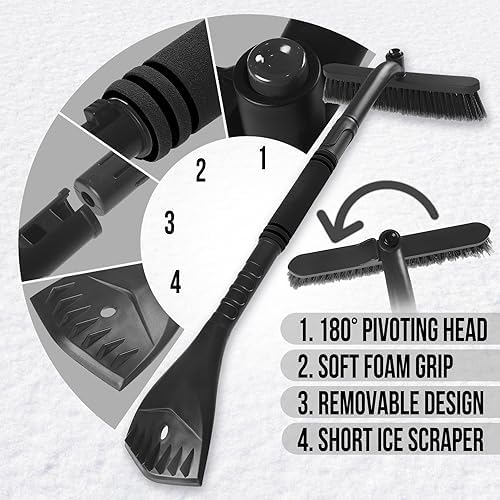 【DURABLE AND STABLE】- Our snow scraper for cars is made of high-quality materials, each material has been carefully selected to withstand cold weather, strong and durable
