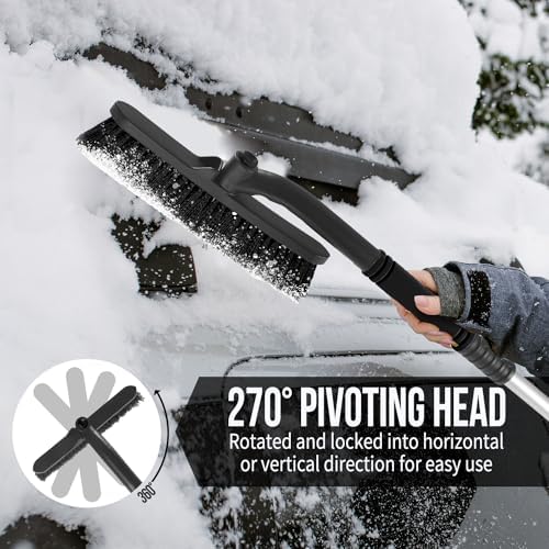 【MULTIPLE USES】- 360° rotating snow brush for a car used to clean snow and ice on car windows or tires according to your actual needs