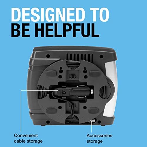 Fast inflation. Despite it’s compact size, the RAC610 can inflate a 13″ care tyre to 35 PSI in under 4.5 minutes.