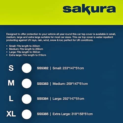 This high quality, water-resistant and breathable top cover is available in 4 sizes designed to fit small, medium, large and extra large cars. It is ideal as an all-year round barrier between your vehicle and the elements. This car top cover is water-repellent protecting against UV rays, rain, wind, snow & ice; birds and other contaminants; in other words, perfect for UK conditions.