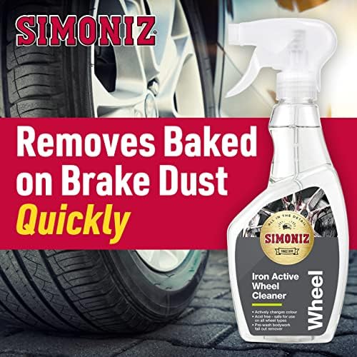 PROFESSIONAL CAR WHEEL CLEANER: Simoniz Iron Active Wheel Cleaner actively changes colour as it cleans alloys to remove dirt, marks & stubborn brake dust easily. Our multi-use Iron Active, can also be used on bodywork as a pre-wash fall out remover.