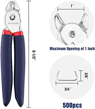 WORKPRO Hog Ring Pliers with 500 Pcs 3/4″ Hog Rings, Galvanized Steel Hog Rings