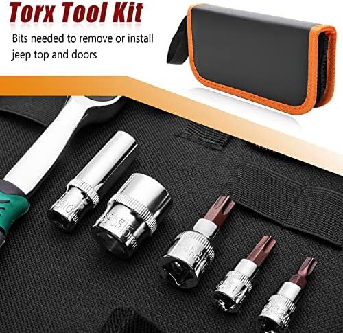 Pre-packaged kit to manage all the Torx and bits needed to remove or install jeep top and doors, small and compact, easy to keep in your jeep